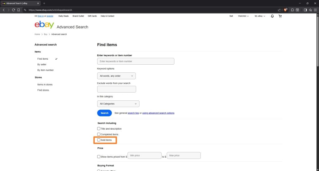 However, eBay includes tools to look up past sales off that item. Good news is that this information is publicly available. You do not need an account or a subscription for that. It is free and available on all eBay sites.