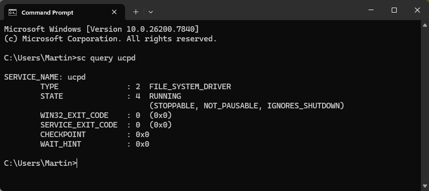 - Run sc config UCPD start= disabled from an elevated command prompt window.